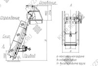 Транспортер СКИП 1000 представляет собой устройство, собранное последовательно основание – опорной рамы предназначено для передачи нагрузки от веса подъемника и поднимаемого груза на опорную поверхность, направляющей – рамы с полозьями для движения в них ковша (скипа), скипа – ковша для загрузки в него и подъема в нем сыпучего материала, ограждений для ограничения доступа к движущимся элементам подъемника, привода – силового агрегата с тормозом осуществляющего перемещение ковша по направляющей с помощью канатной тяги, в крайних положениях ковша устанавливаются концевые выключатели для ограничения перемещения ковша и автоматизации приема крайних положений в ходе рабочего цикла.