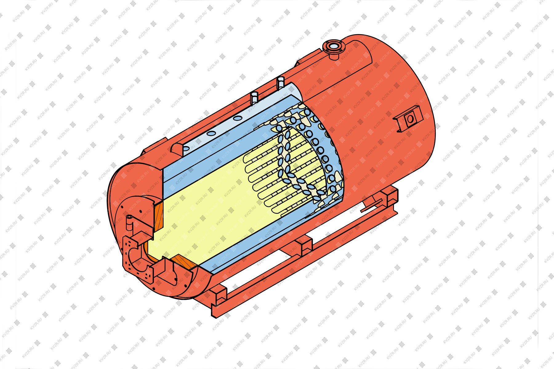 В передней части жаровой трубы находится топка, в задней конвективный пучок труб. К фронту агрегата крепится плита, на которой устанавливается горелка. Для обеспечения безопасности и с целью снижения излишне высокого давления котлоагрегат оборудуется дополнительным взрывным клапаном.