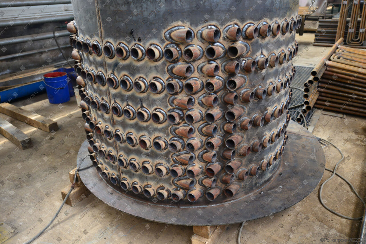 В верхней части теплогенератора приварен паросборник, представляющий собой полуцилиндр. На паросборной камере устанавливаются не менее двух предохранительных клапанов. На паросборной камере имеются штуцеры для установки электроконтактных манометров.